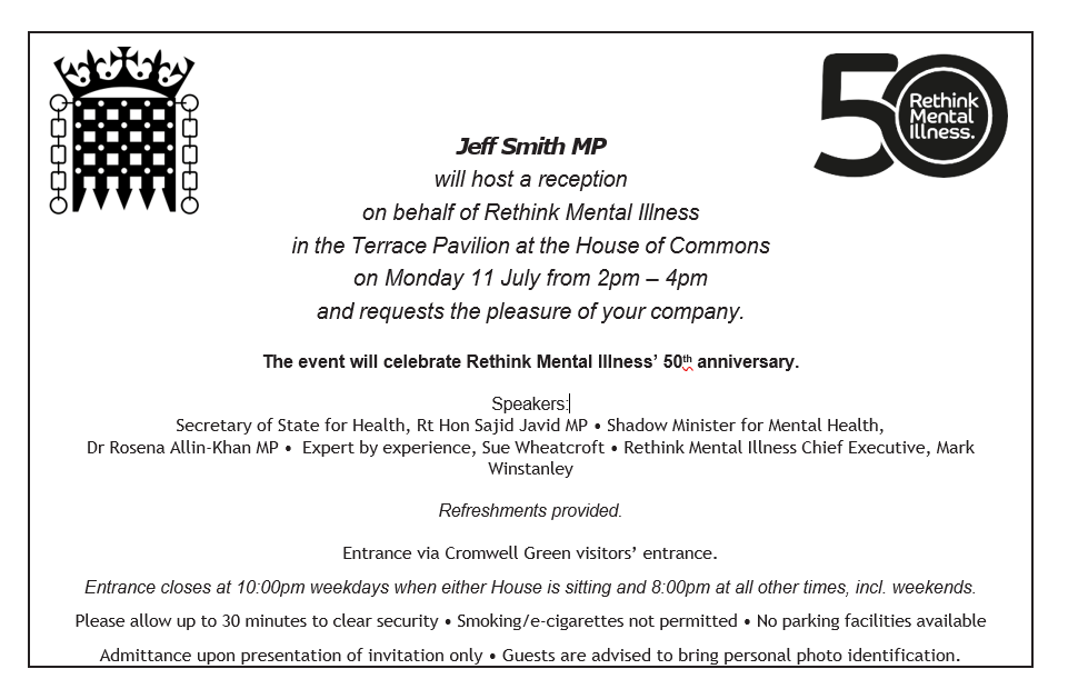 2. Speech: Rethink 50th anniversary event (House of Parliament, 2022)