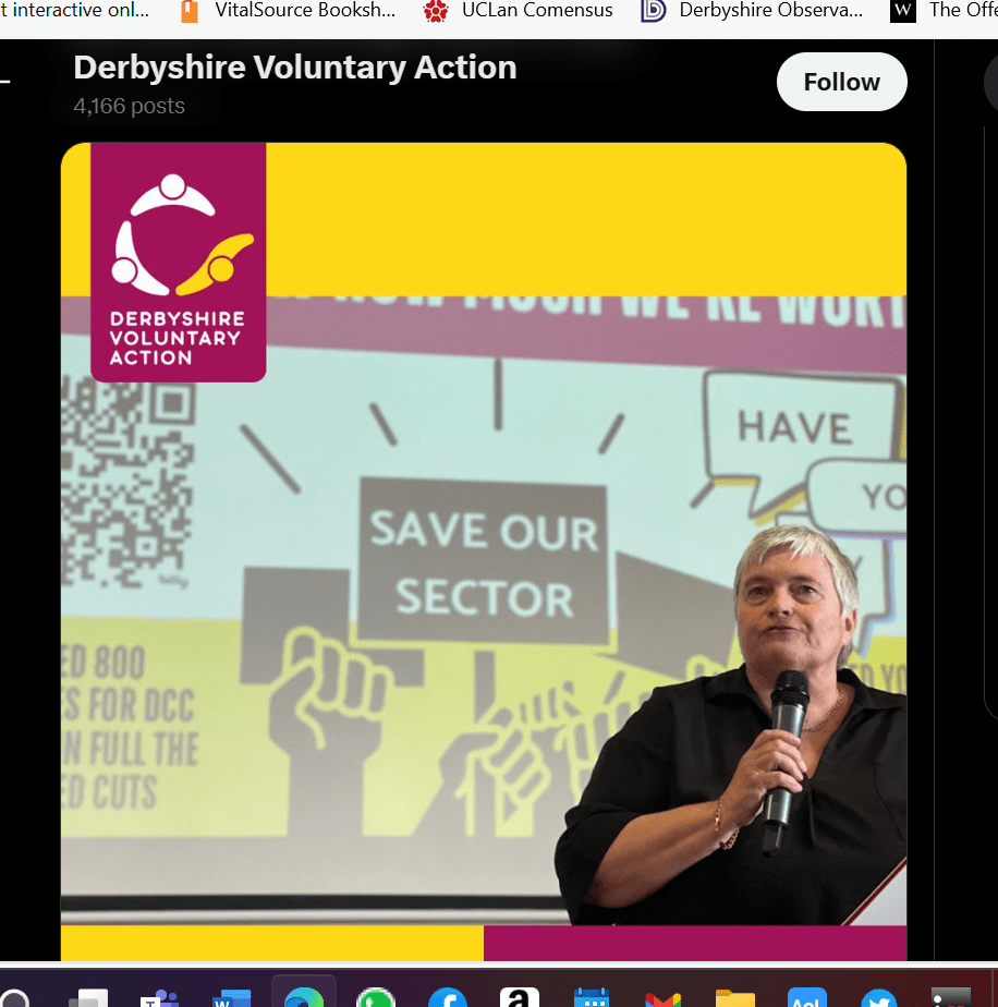 There are many community groups around Derbyshire doing amazing work. If their funding is taken away, what’s left? My guess is that the long-term consequences on people’s health, and therefore the financial cost on the taxpayer, will far outweigh any money that will be saved by devastating the voluntary sector. Please remember that we who run these community groups don’t get paid for what we do. We’re volunteers, who do it because we’re passionate about helping people. But we can’t do it alone.